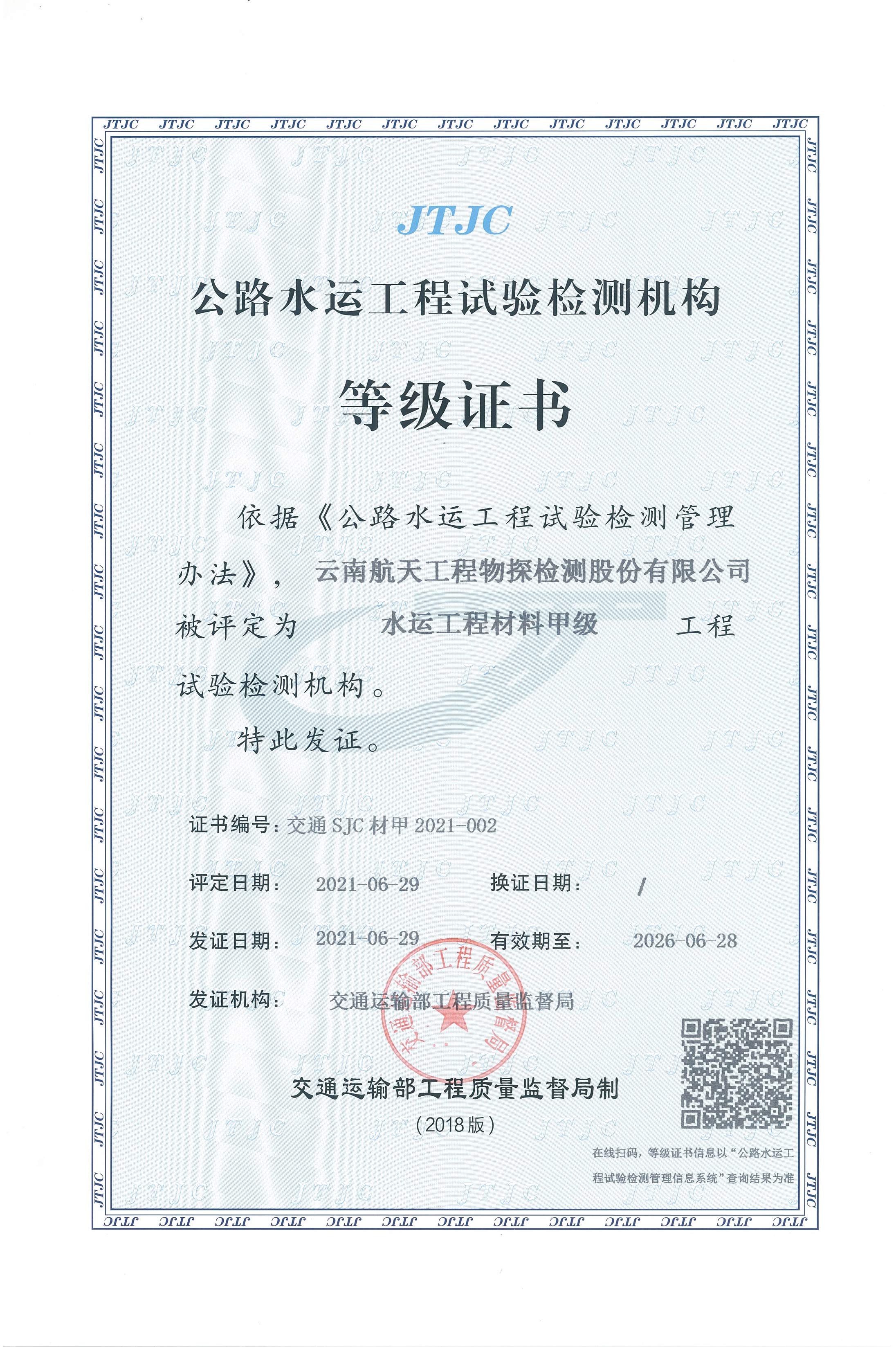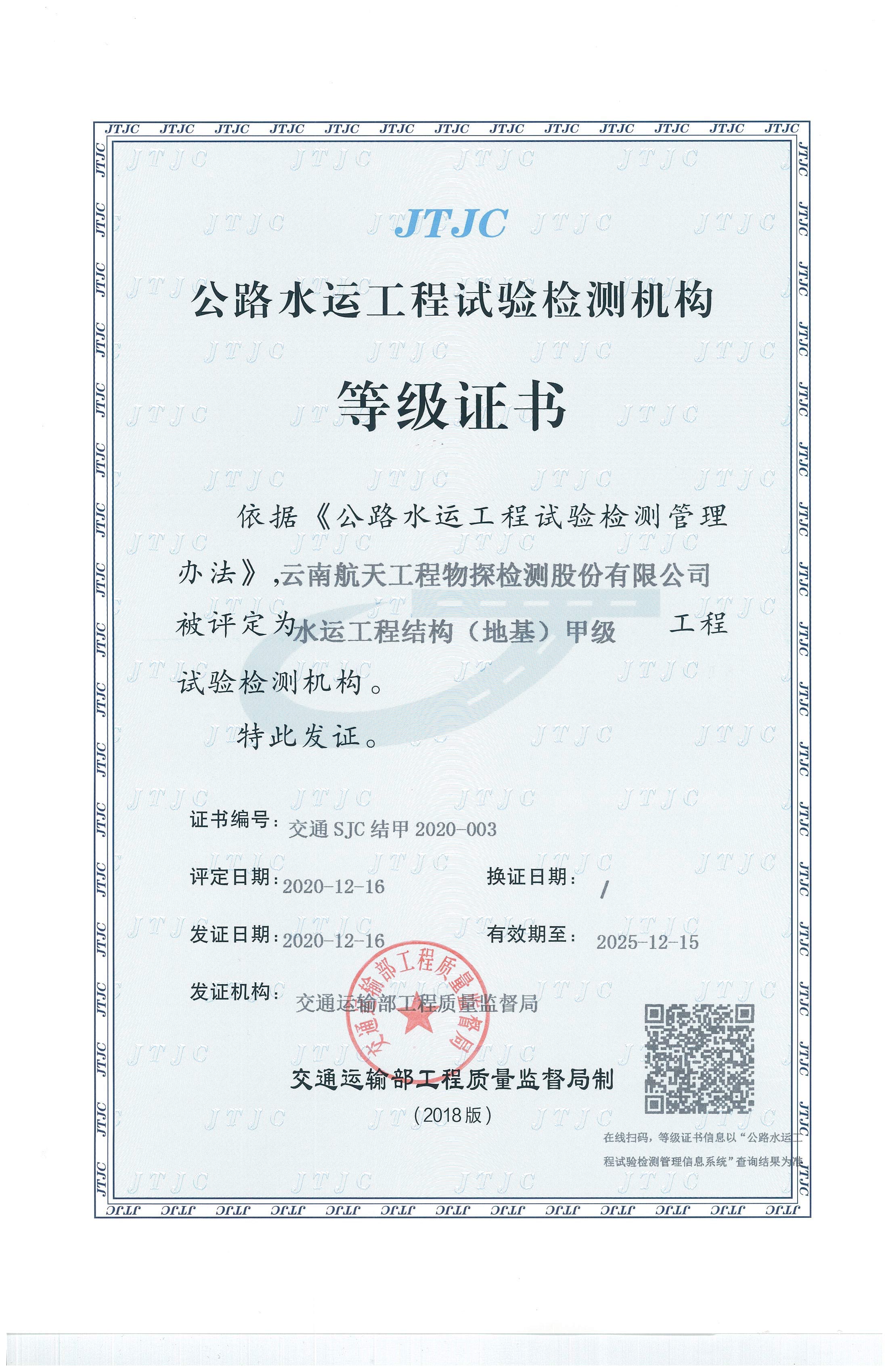水利工程质量检测单位资质等级证...