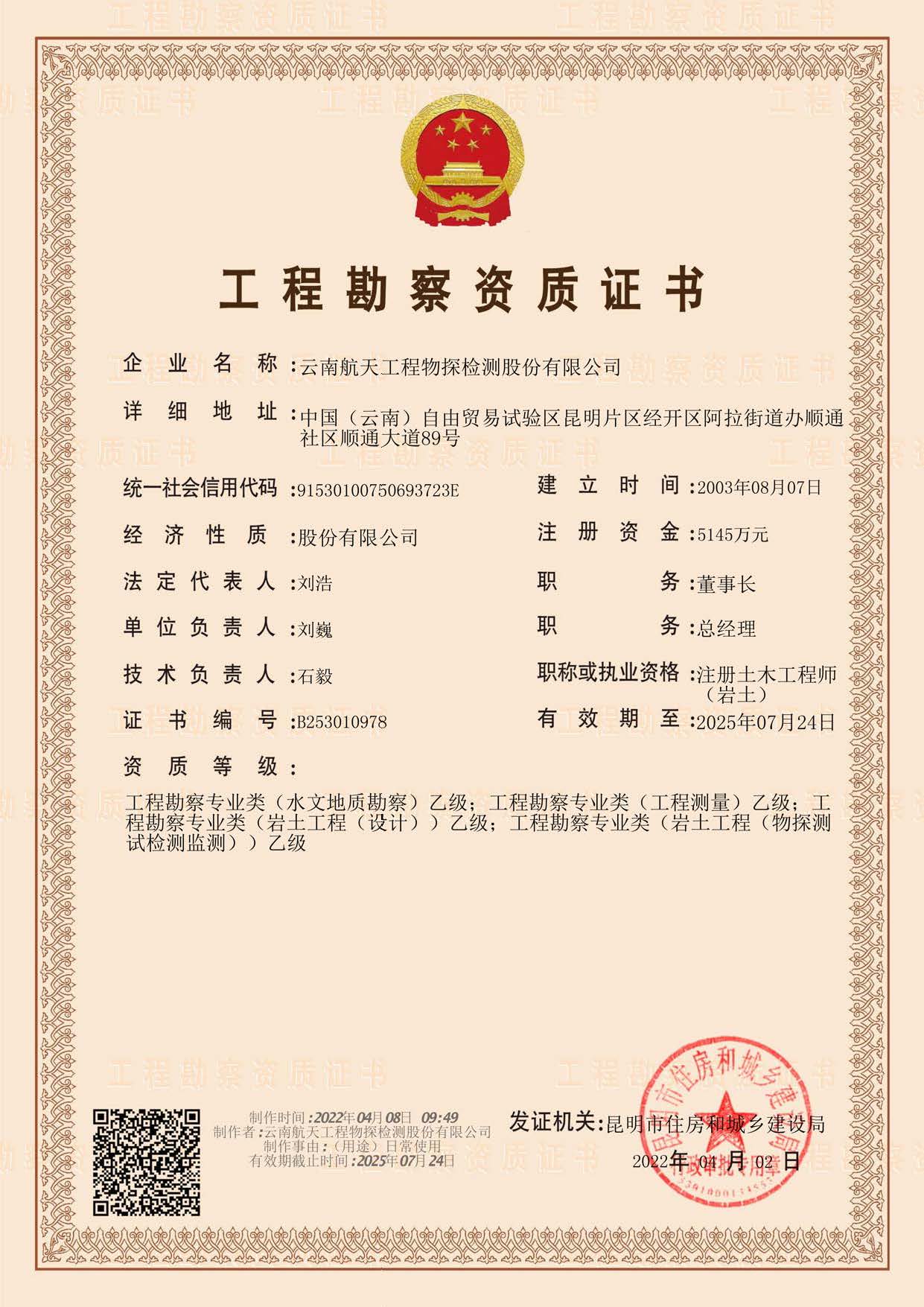 岩土工程勘察甲级