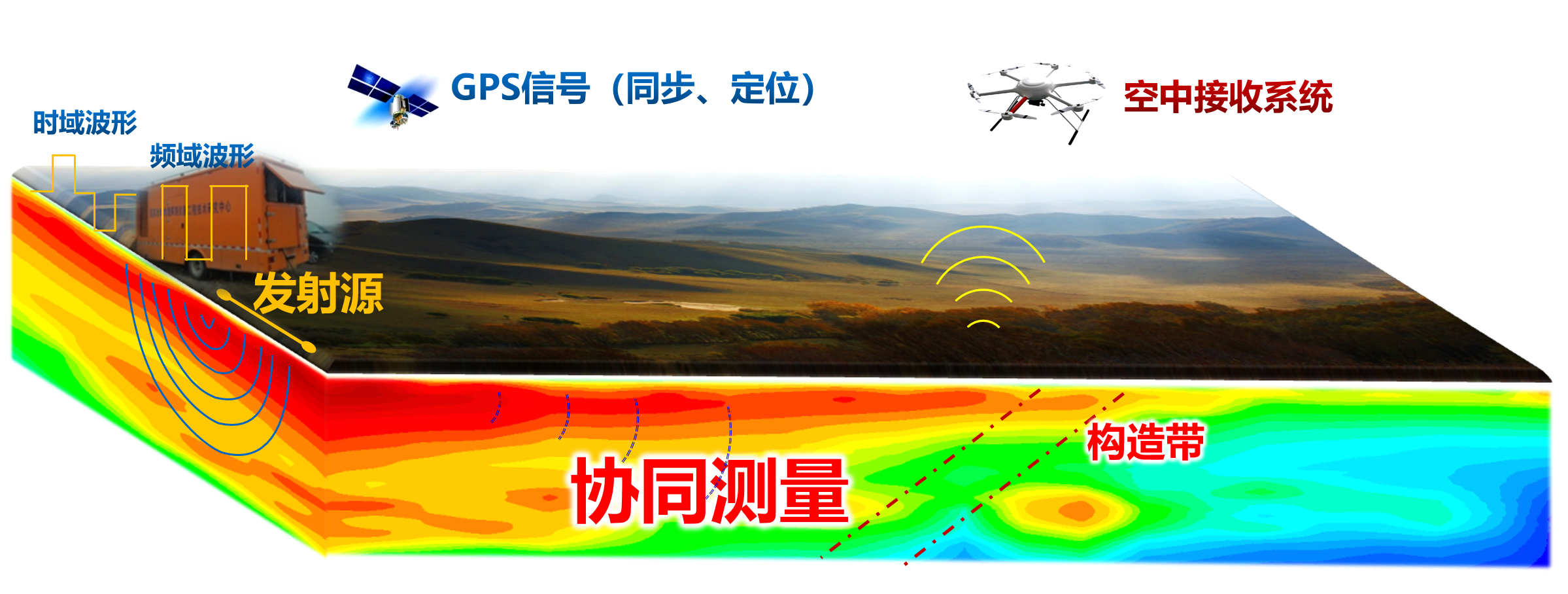 ◆地空协同电磁探地技术技术优势●高效率:大功率电源车发射信号,无人机空...